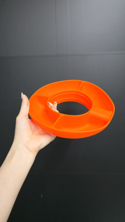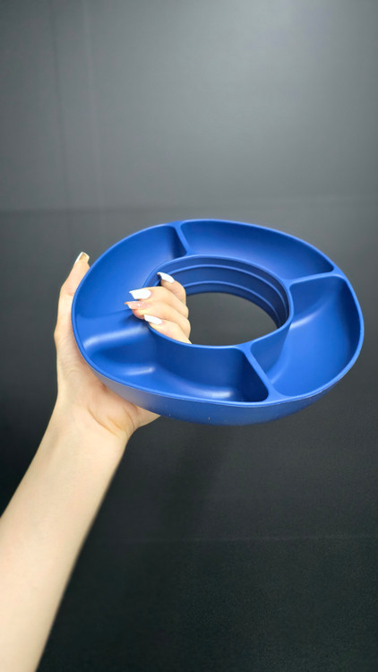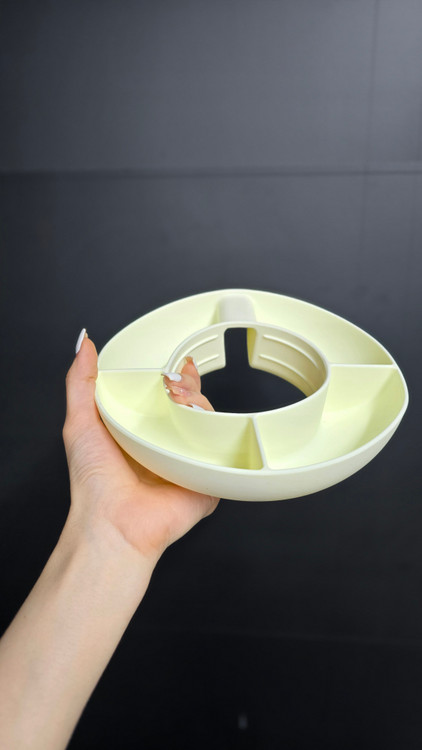 این ظرف دارای 4 بخش جداگانه است که میتوانید در هر قسمت نوع متفاوتی از تنقلات قرار دهید؛ مثل آجیل، شکلات، میوه خشک، پاستیل یا هر میانوعده دلخواه دیگر. این ویژگی باعث میشود تنقلات با هم مخلوط نشوند و هر کدام در بخش جداگانه خود قرار
